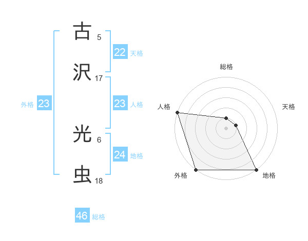 古沢 光虫さんの総格は46画の1点!
