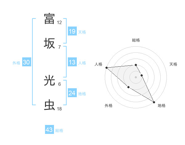 富坂 光虫さんを姓名の画数から五運を鑑定