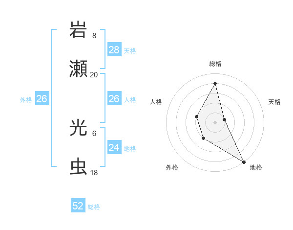 岩瀬 光虫さんの総格は52画の4点!