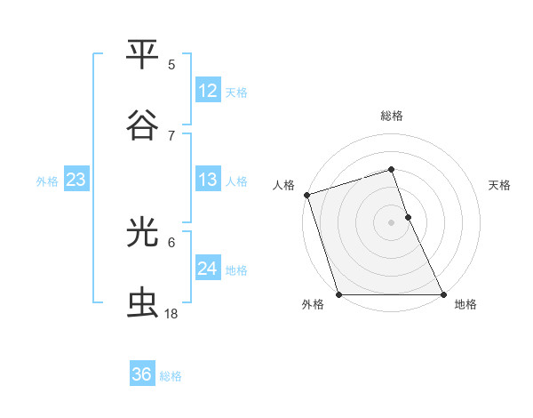 平谷 光虫さんを姓名の画数から五運を鑑定