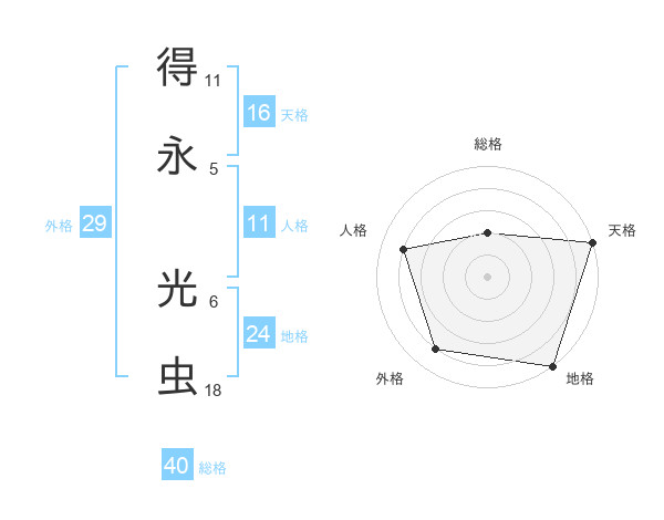 得永 光虫さんの地格は24画の5点!