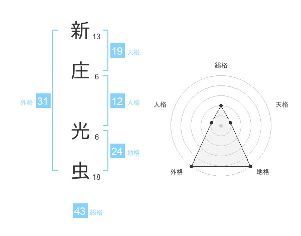 新庄 光虫さんを姓名の画数から五運を鑑定
