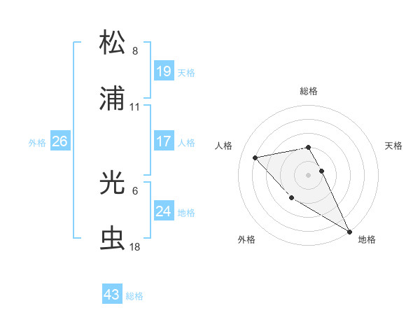 松浦 光虫さんを姓名の画数から五運を鑑定