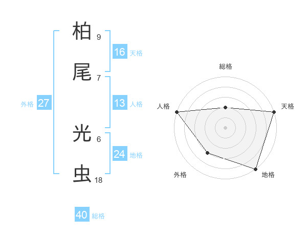 柏尾 光虫さんの総格は40画の2点!