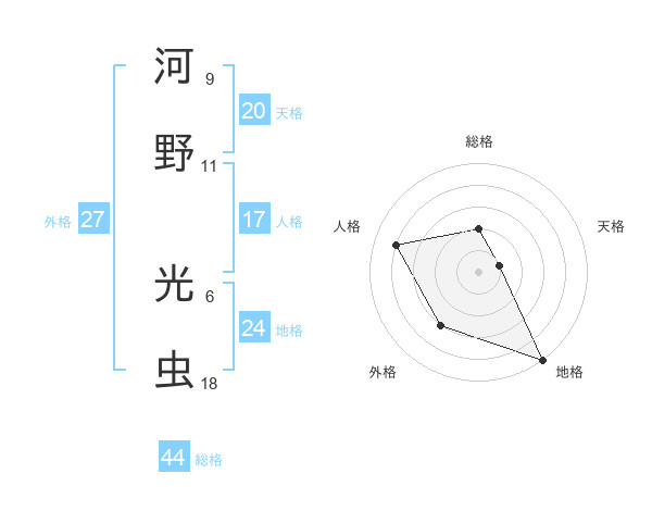 河野 光虫さんの総格は44画の2点!