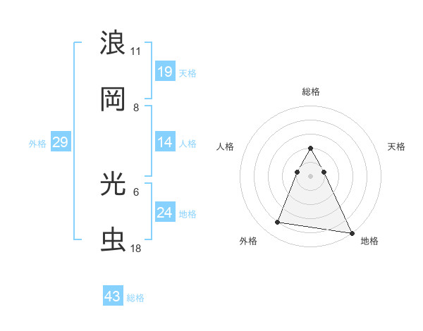 浪岡 光虫さんを姓名の画数から五運を鑑定