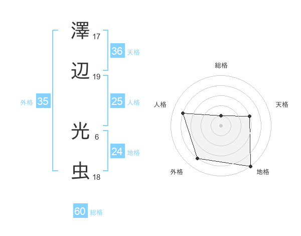 澤辺 光虫さんの地格は24画の5点!