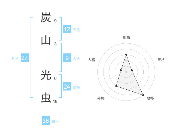 炭山 光虫さんを姓名の画数から五運を鑑定