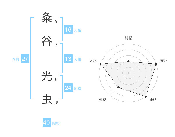 粂谷 光虫さんを姓名の画数から五運を鑑定