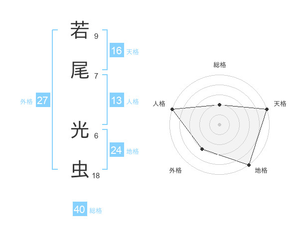 若尾 光虫さんを姓名の画数から五運を鑑定