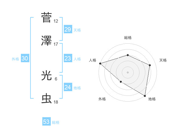 菅澤 光虫さんを姓名の画数から五運を鑑定