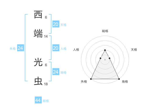 西端 光虫さんの総格は44画の2点!