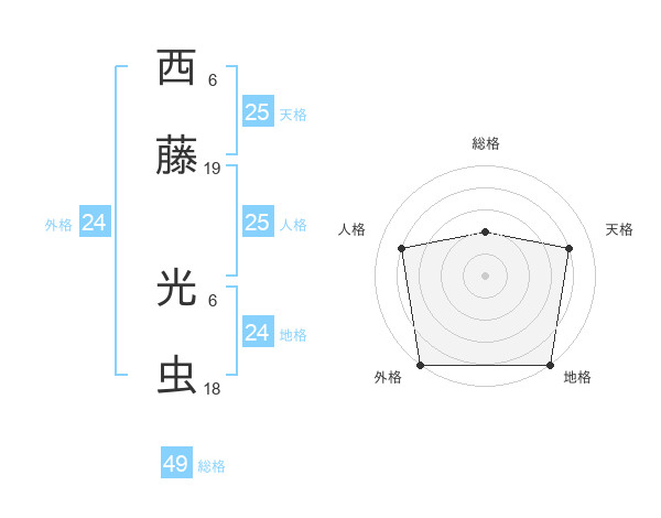 西藤 光虫さんの地格は24画の5点!