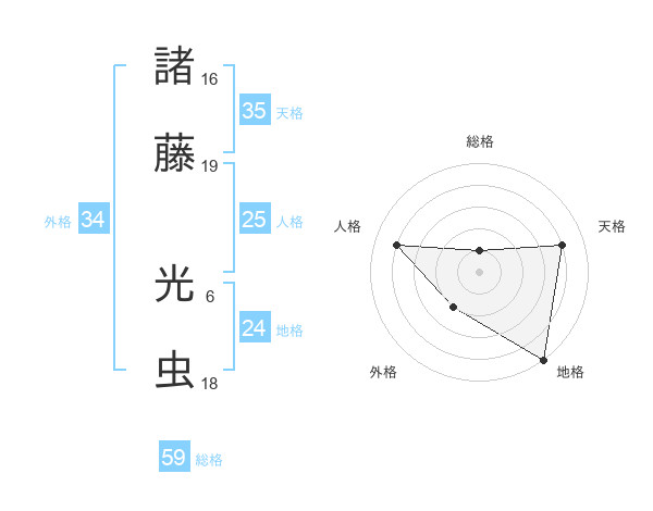 諸藤 光虫さんの外格は34画の2点!