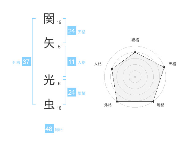 関矢 光虫さんの総格は48画の4点!
