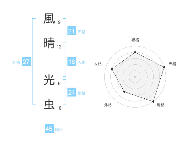 風晴 光虫さんの総格は45画の4点!
