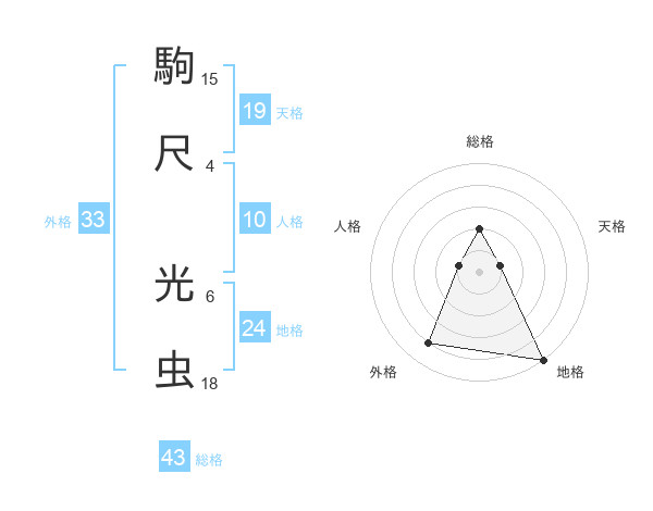 駒尺 光虫さんを姓名の画数から五運を鑑定