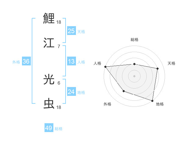 鯉江 光虫さんの総格は49画の2点!