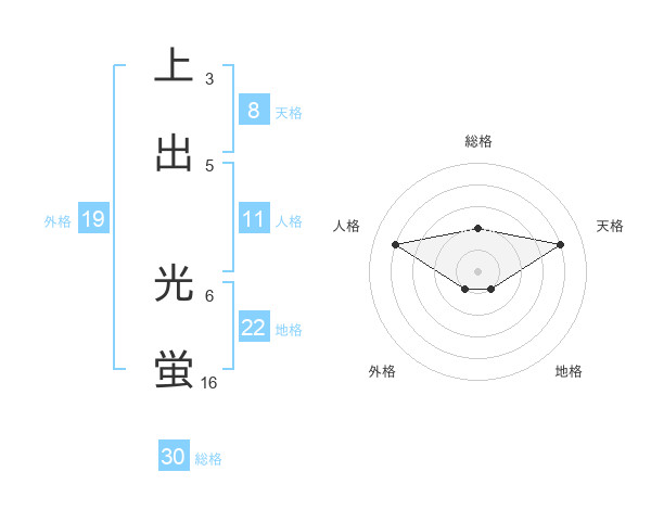 上出 光蛍さんを姓名の画数から五運を鑑定