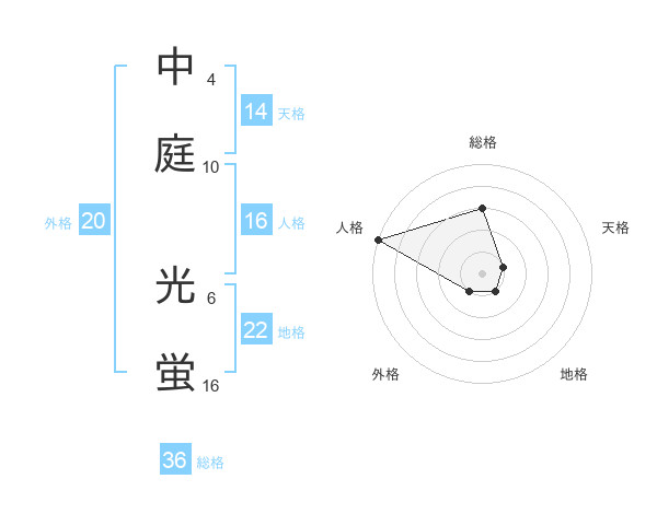 中庭 光蛍さんを姓名の画数から五運を鑑定