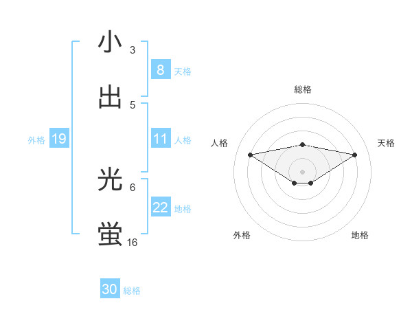 小出 光蛍さんの総格は30画の2点!