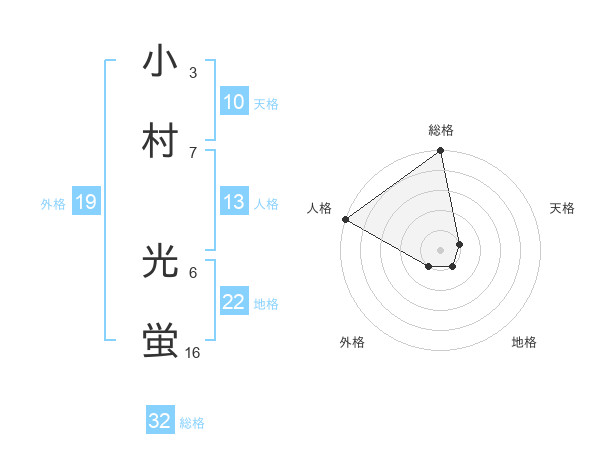小村 光蛍さんの総格は32画の5点!