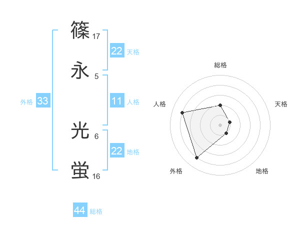 篠永 光蛍さんの地格は22画の1点!