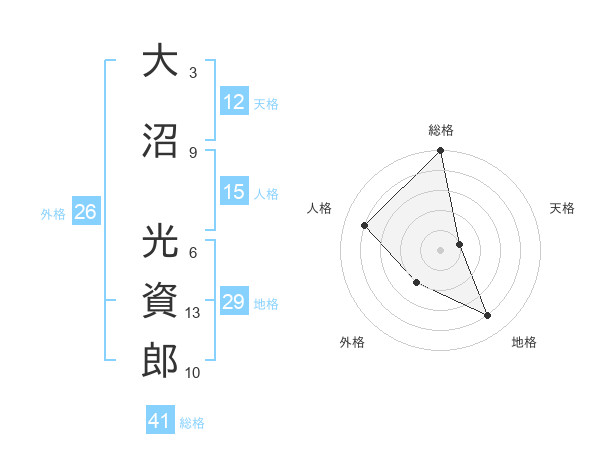大沼 光資郎さんを姓名の画数から五運を鑑定