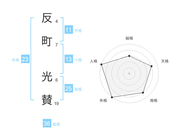 反町 光賛さんの外格は23画の5点!