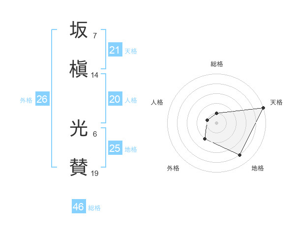 坂槇 光賛さんを姓名の画数から五運を鑑定