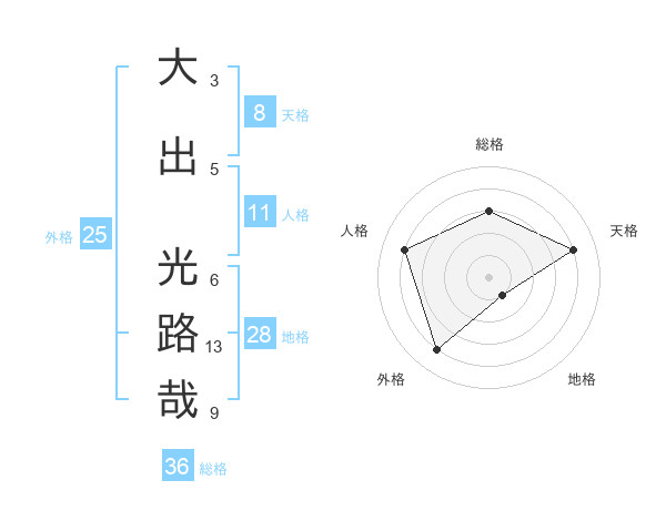 大出 光路哉さんの天格は8画の4点!