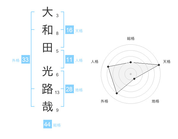 大和田 光路哉さんを姓名の画数から五運を鑑定