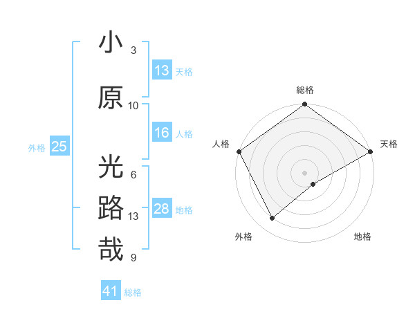 小原 光路哉さんの天格は13画の5点!