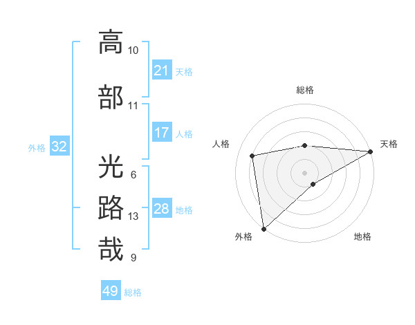 高部 光路哉さんを姓名の画数から五運を鑑定