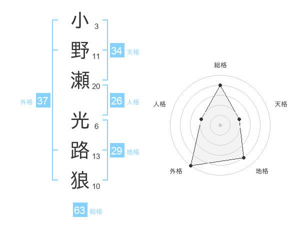 小野瀬 光路狼さんを姓名の画数から五運を鑑定