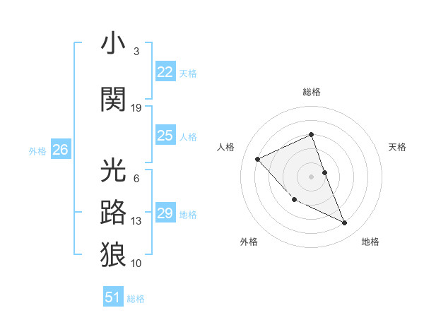 小関 光路狼さんの総格は51画の3点!