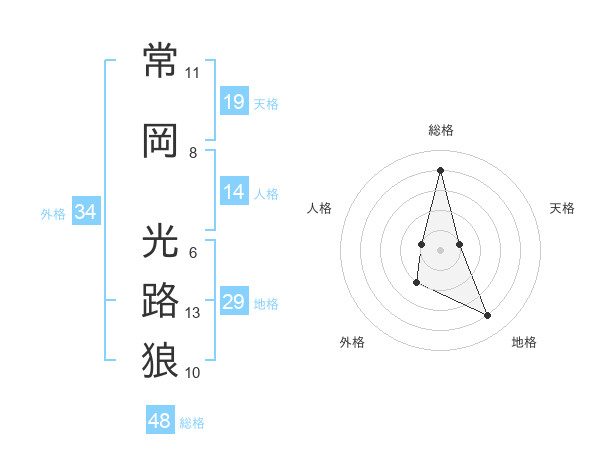 常岡 光路狼さんを姓名の画数から五運を鑑定