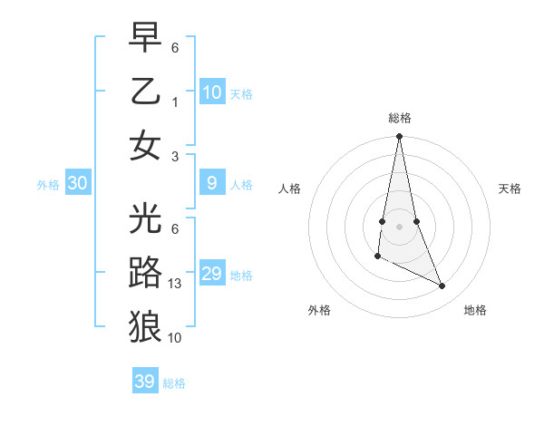 早乙女 光路狼さんの総格は39画の5点!