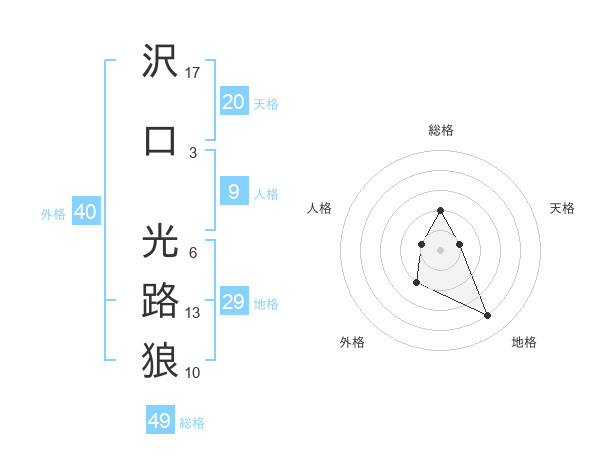 沢口 光路狼さんを姓名の画数から五運を鑑定