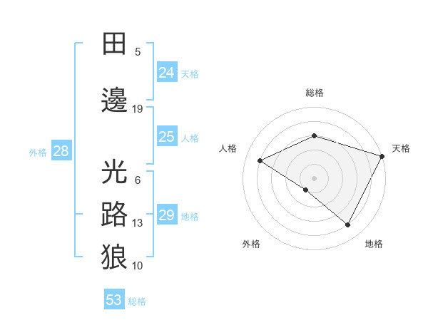 田邊 光路狼さんを姓名の画数から五運を鑑定