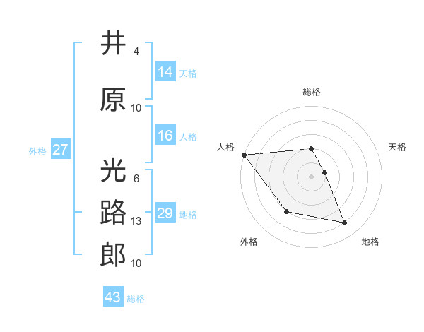 井原 光路郎さんの総格は43画の2点!