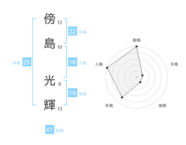 傍島 光輝さんを姓名の画数から五運を鑑定