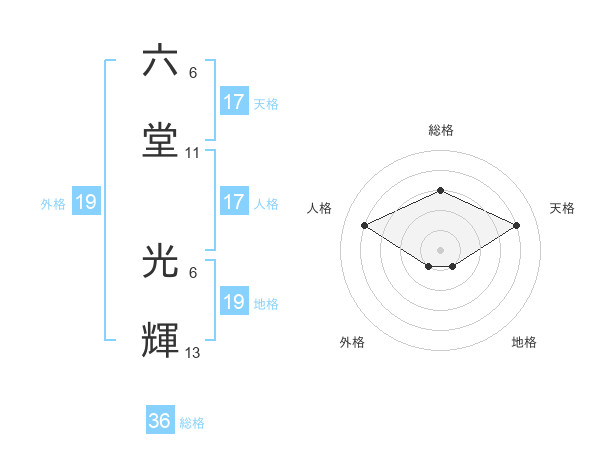 六堂 光輝さんを姓名の画数から五運を鑑定