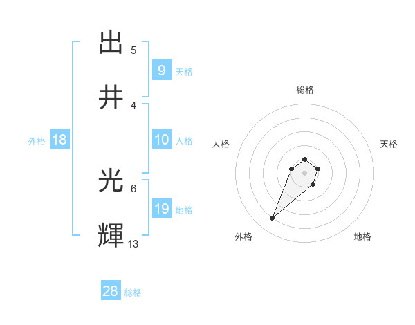 出井 光輝さんの外格は18画の4点!