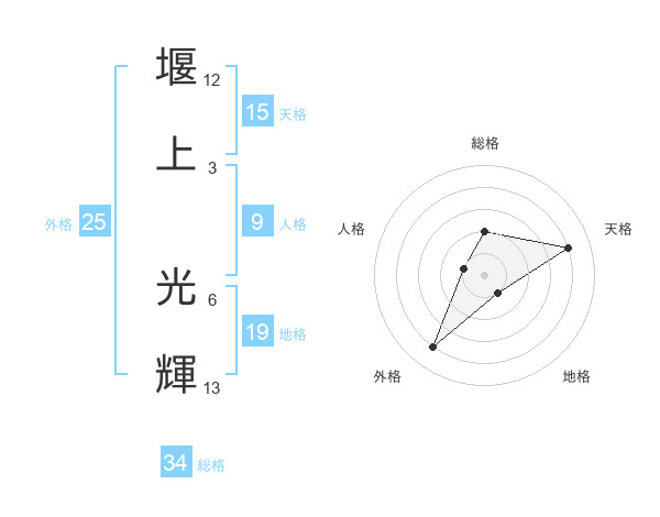 堰上 光輝さんを姓名の画数から五運を鑑定