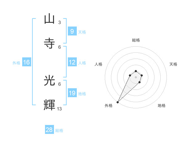 山寺 光輝さんを姓名の画数から五運を鑑定
