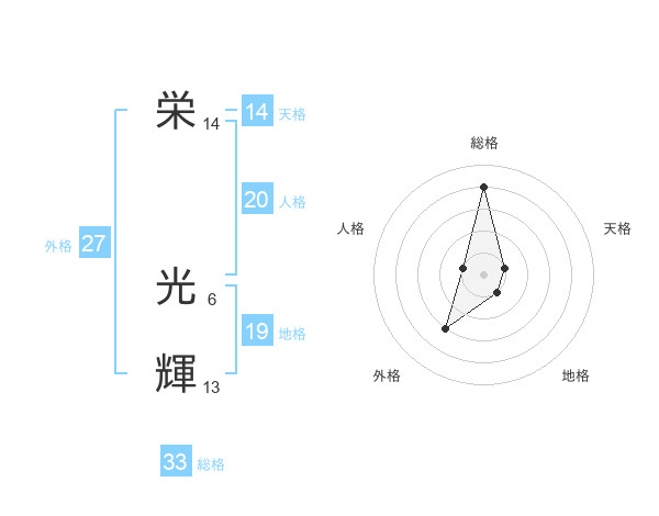栄 光輝さんの総格は33画の4点!