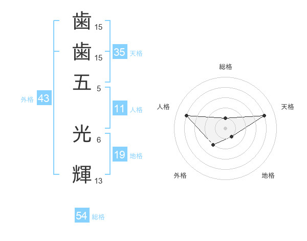 歯歯五 光輝さんを姓名の画数から五運を鑑定