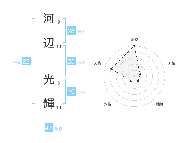 河辺 光輝さんを姓名の画数から五運を鑑定