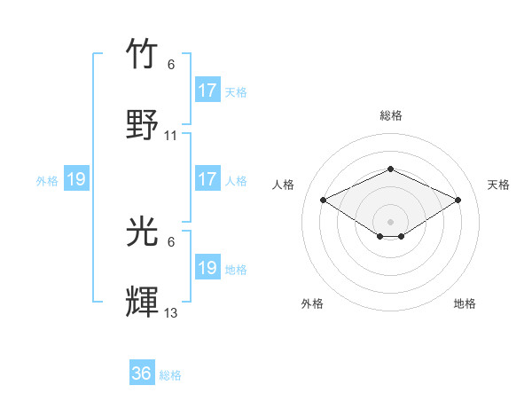 竹野 光輝さんを姓名の画数から五運を鑑定